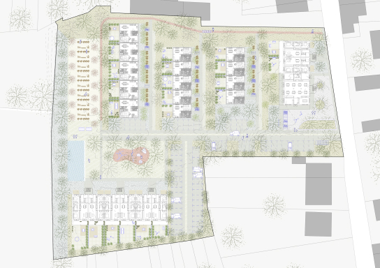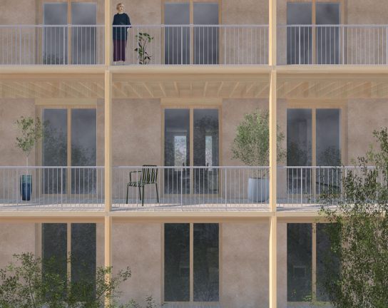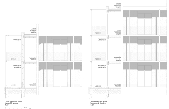 From a construction point of view, the proposal is based on a construction system in timber frame filled with lime-hemp concrete with partition walls in CLT panels. We propose a modular model combining several construction methods. The basic principle is to use each material in the right place and in the right quantity and to take advantage of the strengths of each. The main construction material is wood because it requires few resources to produce, it is renewable and it acts as a carbon trap. It is available in timber frame when it is used for the basic frame. The advantage is the modularity and flexibility of the post-beam, its reproducibility. But also the saving of material. Unlike the pierced wall, the post-beam uses material where it is necessary, only. When it comes to building partition walls (dividing walls between dwellings), we favor the CLT wall which will allow the modules to be braced; it will also be used as a floor. Since these are continuous elements, the issue of managing CLT offcuts is avoided. This mixed wood structure is economical in raw materials and allows for prefabrication in the workshop and very rapid assembly.