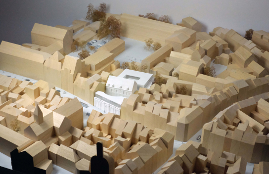 The proposed extension project can be seen as a reflection of the layout of the original building, with the existing front courtyard and the new inner courtyard highlighting the hotel as the true architectural protagonist. The project conceives of the Oignies Treasure as the symbolic and formal origin of the whole. As if it were a hidden chest, a circular drum located in the basement in line with the historic hotel constitutes the central point around which the new exhibition spaces gravitate.