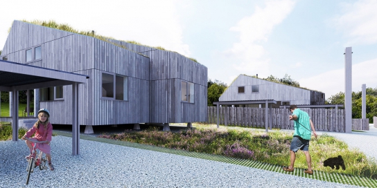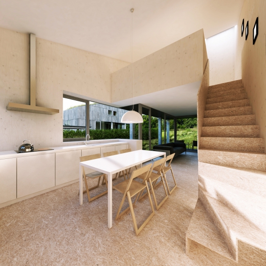 It was requested to study the possibility of creating comfortable and inexpensive accommodation suitable for “HP” residents. The site on which these units are implanted is located on Barvaux outskirts. The challenge was urban, technical and architectural. It was to implement a new micro- neighborhood within the urban grid and also to imagine a new way of designing housing in order to find innovative solutions to reduce construction costs ( € 100,000 per house), to provide modularity in the living areas, to maintain close ties with nature, to develop healthier, well insulated houses with easy maintenance.