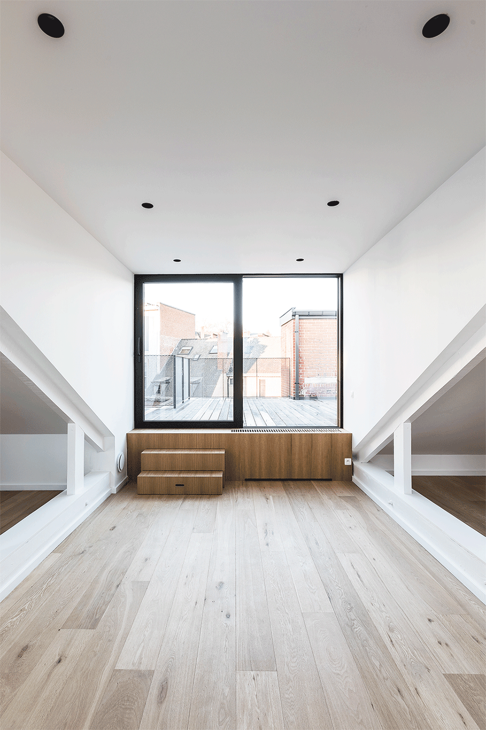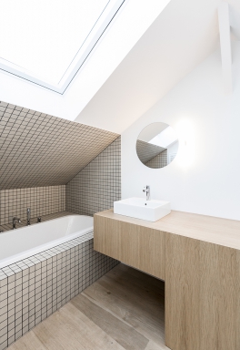 The order was to bring a certain diversity in the building by maintaining an office shelf on the first floor, a business on the ground floor but transforming the two upper floors and the attic into apartments. On the other hand, it was also necessary to isolate the façade which was aging very badly because of the thermal bridges present at each interruption of the curtain wall by the concrete structure.