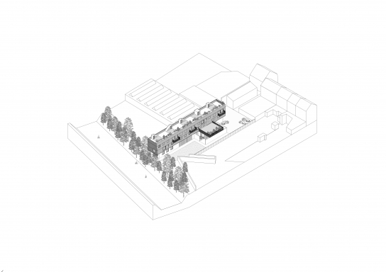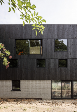 Designed on the basis of a co-creation process with the inhabitants. The building houses mixed functions: housing, offices and a large area devoted to shared community spaces (garden, shared kitchen, shared guest room, etc.)The building is located on a plot set back from the largely green street. The ground floor is designed as a base alternating large glazed surfaces and brick walls that play with perspectives and visually enlarge the space. It mainly houses the professional premises and the common areas which open widely onto the common garden. The accommodations are built in CLT (crossed laminated timber) and are designed on two levels. An open-air passageway, on the east side, distributes access and allows you to look for views, they thus benefit from an unobstructed view and ideal sunshine and display very good energy performance. The flat roof is a terrace from which the apartments benefit and which gives a panoramic view of the city. All the dwellings not only have private functions (kitchen, bedrooms, living room, roof terrace and balcony) but also benefit from common functions which allow great modularity in uses and promote exchanges within the grouped habitat. . The balance in the private sphere and common spaces is respected, the articulation is obvious. The fact that the apartments are located on the upper floors makes it possible to clearly differentiate the functions.Today, it is important to re-think the way we live (in the city). The philosophy being to agree to reduce the size of one's individual accommodation by compensating with shared spaces, which not only allows oneself the freedom to have, or not, more space(s), to save on the fact that these spaces, which are used less often, have a cost borne by several co-owners, but also, and this is certainly the most important, to create links, to energize interactions, to create a place that promotes exchanges, mutual aid, sharing.